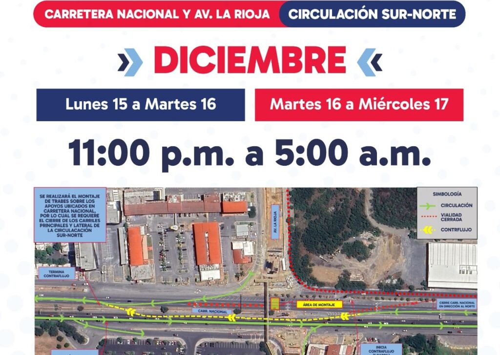 Los automovilistas podrán reincorporarse a la Carretera Nacional metros más adelante, luego de pasar la zona de trabajos.