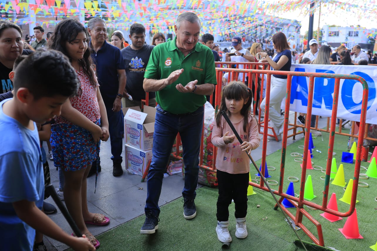 El Alcalde de Guadalupe Héctor García acompañado de su esposa Blanca Treviño saludaron a las familias y niños recorrieron los stands de activaciones y repartieron obsequios.