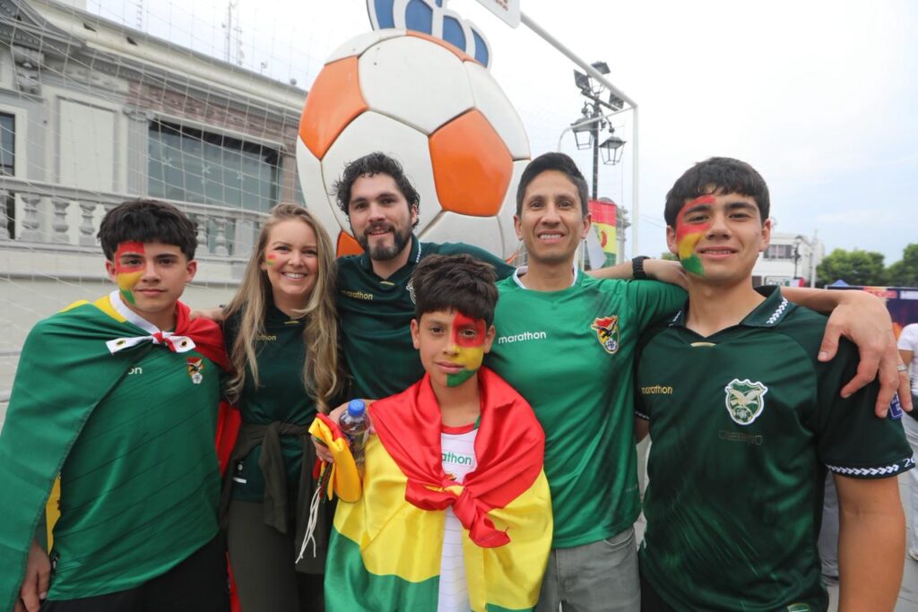 Cientos de personas disfrutaron de la previa del partido entre Bolivia e Irak, en la Plaza Principal de Guadalupe.