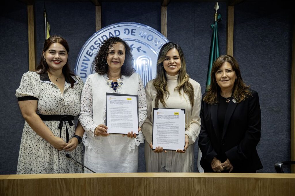 Durante la ceremonia de firma de convenio, participaron Sofía Velasco Becerra, presidenta del COPRED NL; y Davia Amaya Herrera, directora de Jurídico de la UDEM, acompañadas por Marcela Chavarría y Chavarría, directora del Centro de Equidad de Género e Inclusión (CEGI) de esta casa de estudios.