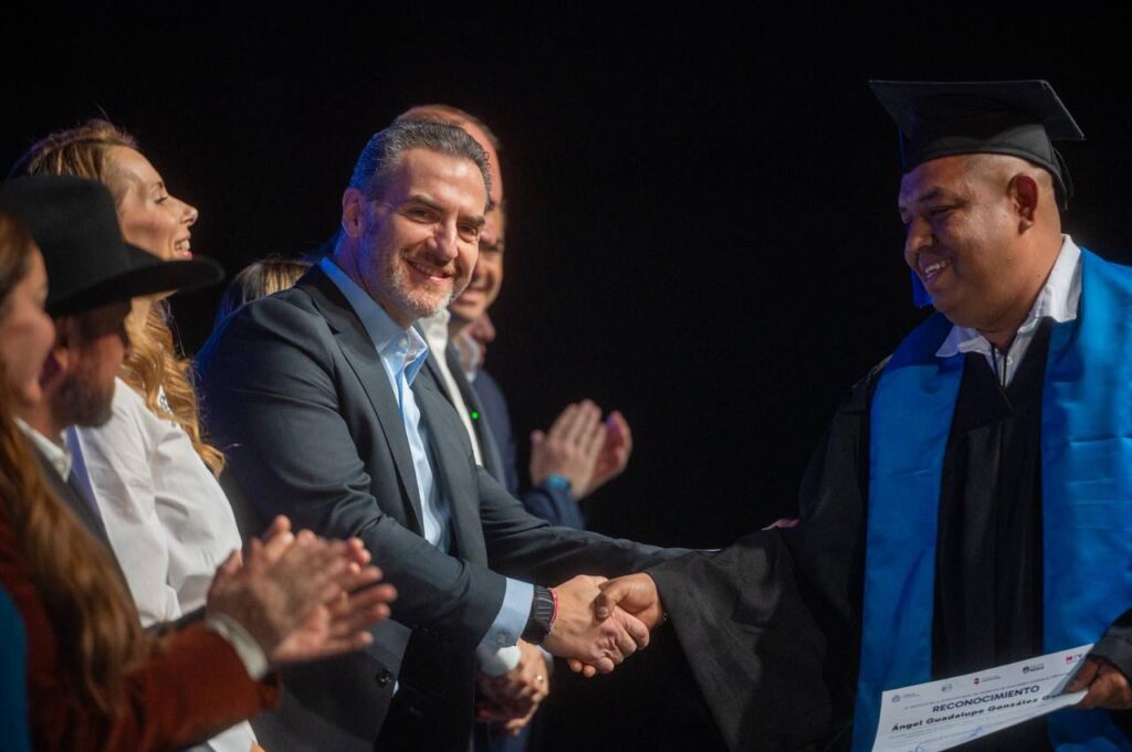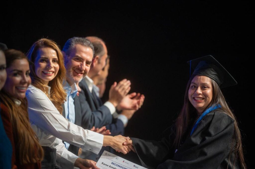 Esta vez, 900 personas culminaron este proceso académico, en una ceremonia encabezada por el alcalde Adrián de la Garza, en compañía de su esposa Gaby Oyervides, presidenta del Sistema Municipal DIF y, ante la presencia de familias, autoridades municipales y comunidad educativa.