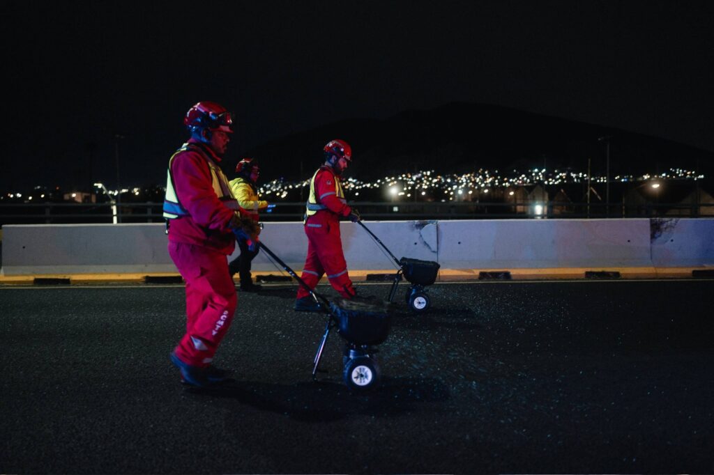 Como medida para salvaguardar la integridad de la ciudadanía, brigadas operativas dispersaron haluros alcalinotérreos (sales especializadas) en puntos críticos de congelamiento.