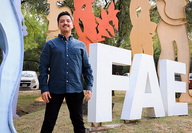Daniel Luis Montiel tiene 32 años, es originario de Puebla y estudia actualmente la Maestría en Gestión y Producción de Proyectos Artísticos y Culturales en la Facultad de Artes Escénicas de la UANL.