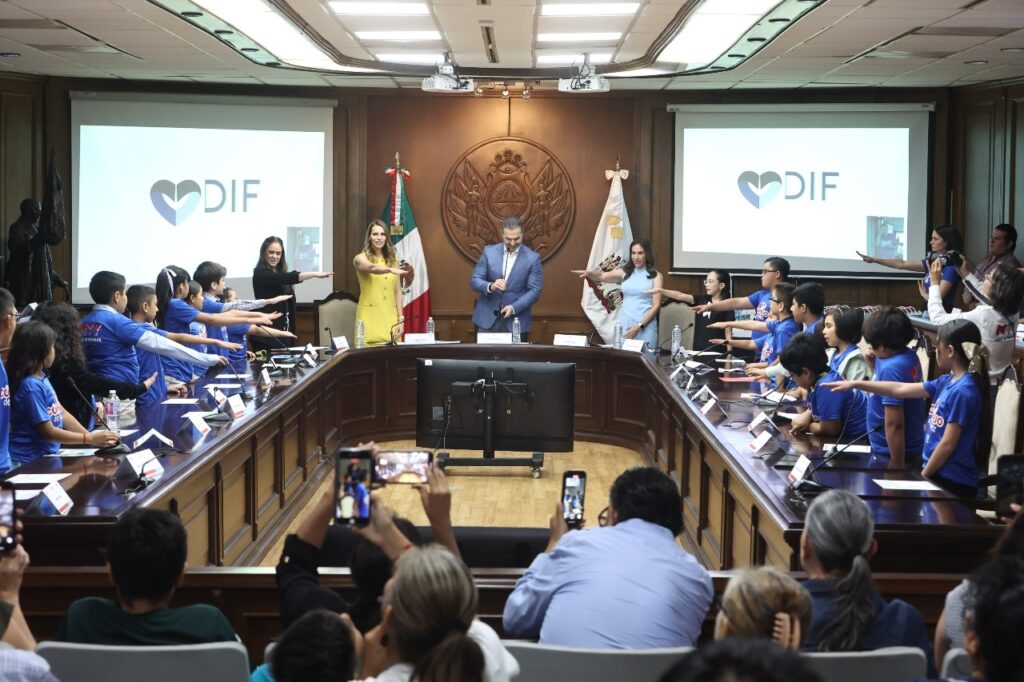 En la ceremonia participaron la Directora General del DIF, Ivonne Álvarez García; la regidora Zally Emmanuelle Alanís Izaguirre, presidenta de la Comisión de Atención al Desarrollo de la Niñez y Adolescencia; la Directora de Infancia y Familia del DIF, Liliana Alejandra Barrera López; así como infancias titulares y embajadoras.