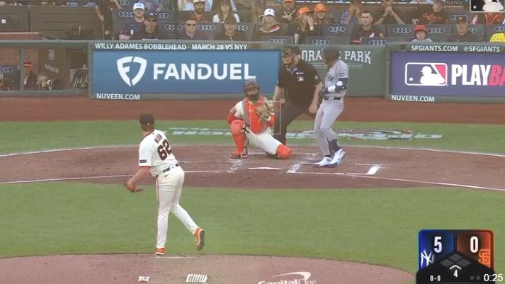 El 25 de marzo, el panameño de los Yankees, José Caballero, hizo historia al solicitar el uso del video para determinar si fue o no strike, el primer lanzamiento recibido en su contra en la cuarta entrada por parte del serpentinero de Gigantes, Logan Webb. Tras la revisión, la decisión del ampáyer se mantuvo firme.