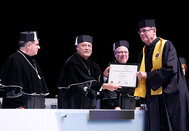 “Ustedes han trascendido las aulas y los laboratorios convirtiéndose en guías, un ejemplo de compromiso ético y de vocación por el conocimiento”, sostuvo el Rector de la UANL, Santos Guzmán López.