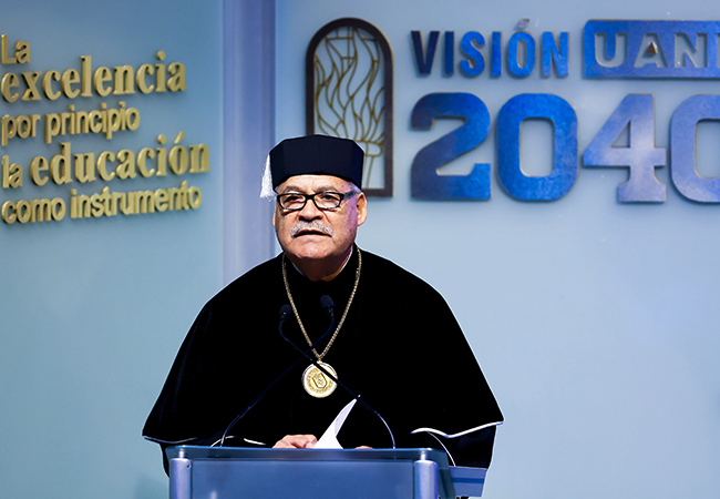 Durante su mensaje, agregó que valores como la excelencia académica y la responsabilidad social han permeado en la institución a través de la educación integral, investigación, vinculación comunitaria, fomento de valores y sustentabilidad.