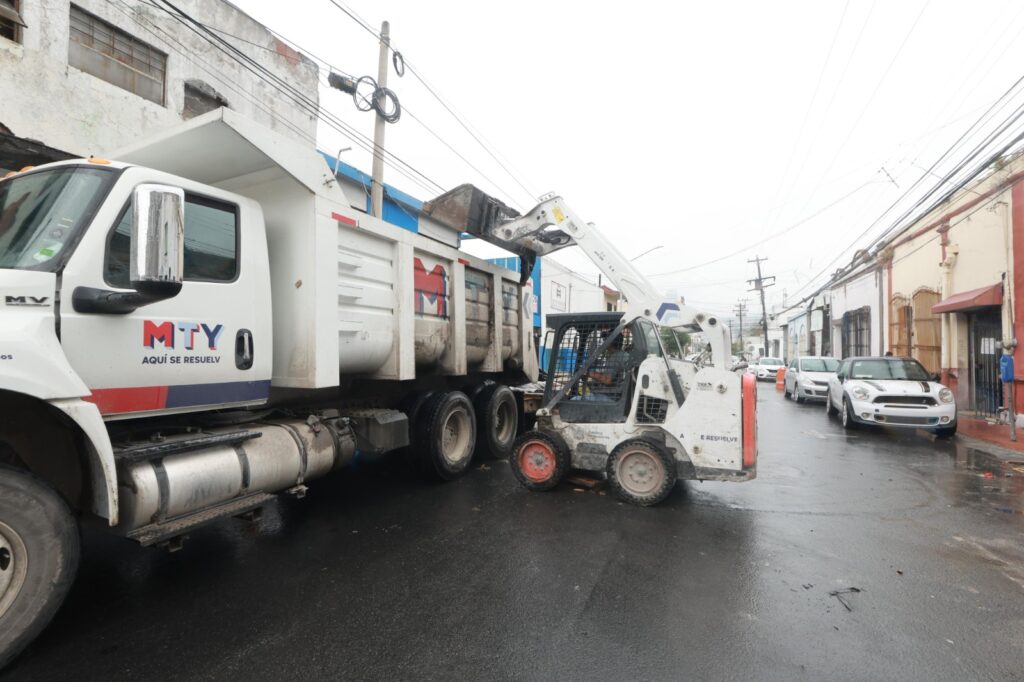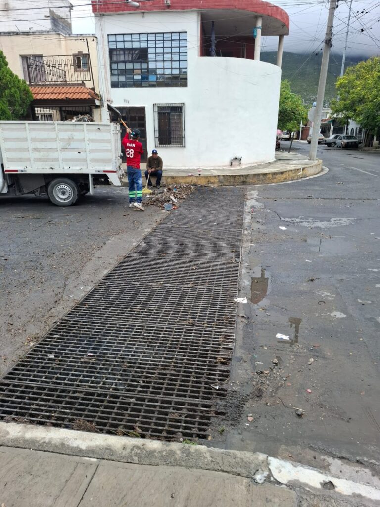 Los elementos de la Secretaría de Servicios Públicos de Monterrey han levantado 67.04 toneladas de basura de 1,500 rejillas pluviales intervenidas únicamente en el último día y medio.