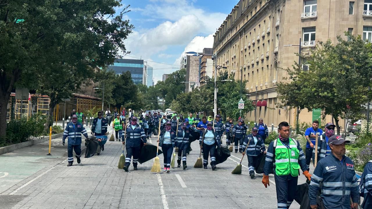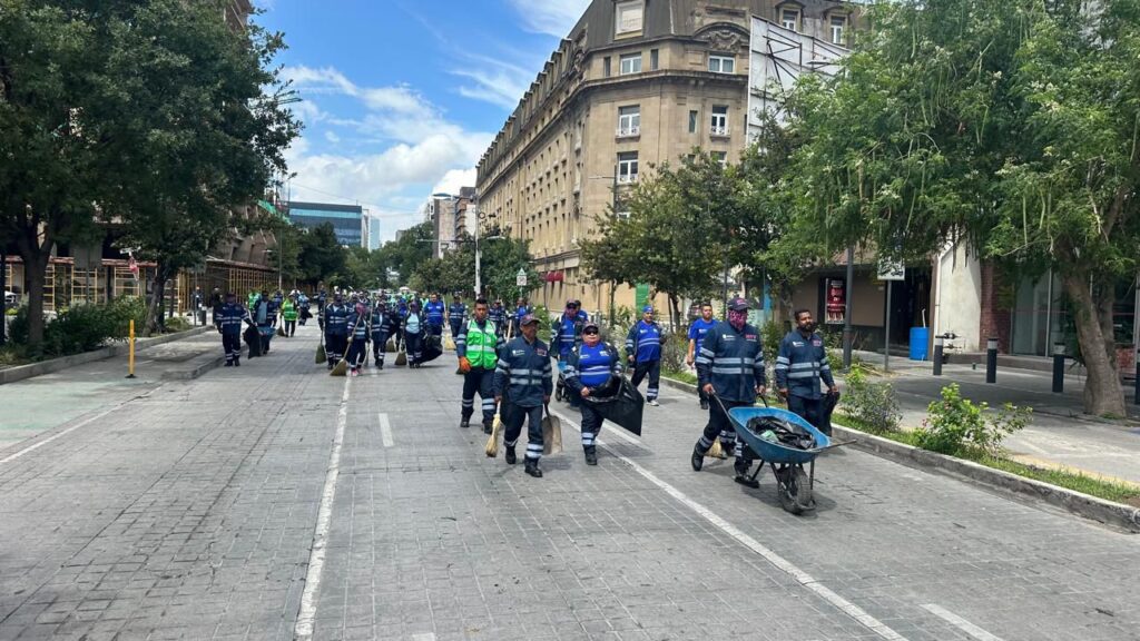 Los elementos de limpia realizaron barrido manual por el primer cuadro de Monterrey logrando levantar 8.7 toneladas de desechos.