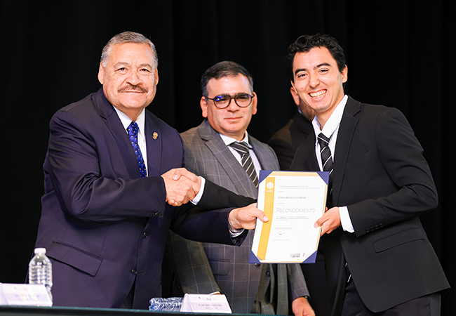 Asimismo, el Rector de la UANL exhortó a los jóvenes galardonados a continuar su desarrollo profesional dentro de la Institución y les comentó que la UANL les ofrece un abanico de oportunidades para seguir creciendo personal y profesionalmente.