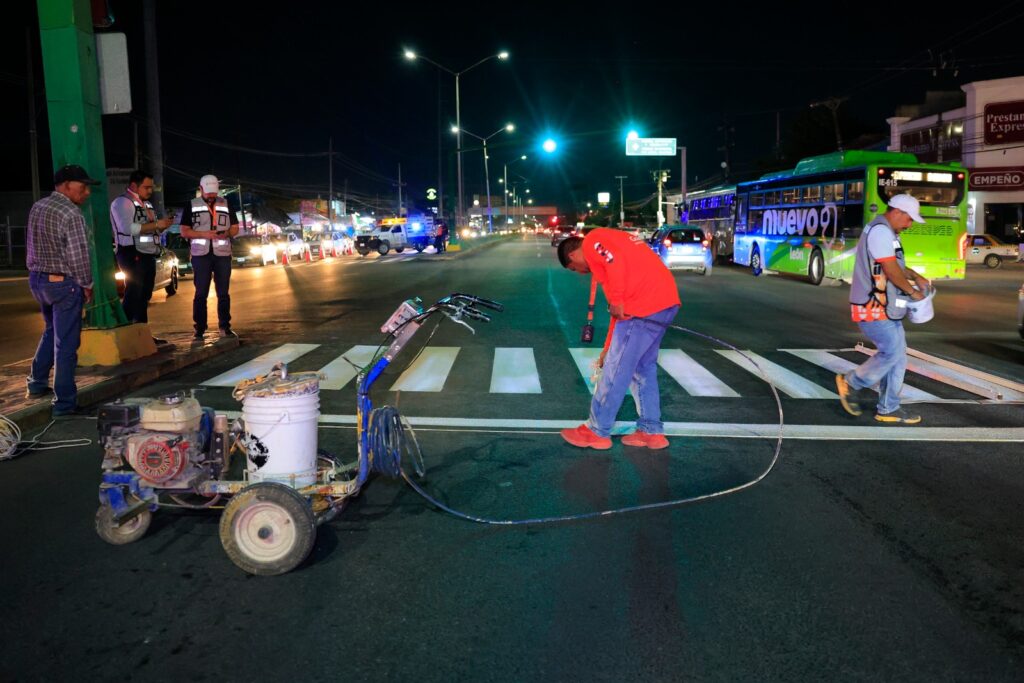 Personal de la Dirección de Ingeniería Vial de Guadalupe informó que también se realizaron trabajos de pintura vial en los cuales se han aplicado más de 209 mil metros lineales aunado a la instalación de mil 100 boyas para la reducción de velocidad en vialidades principales.