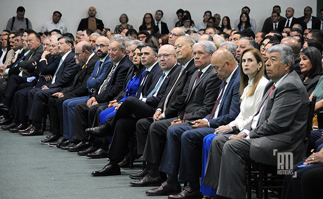 La ceremonia solemne, realizada en el Gimnasio del Polideportivo FIME, fue encabezada por el rector de la UANL, Santos Guzmán López, acompañado por la Honorable Junta de Gobierno, presidida por el Dr. Benjamín Limón Rodríguez, quien se encargó de tomar protesta al maestro en ciencias. También estuvieron presentes directores de diversas facultades, exdirectores de la institución, personal académico y administrativo, estudiantes, así como representantes de empresas y organismos del sector industrial.