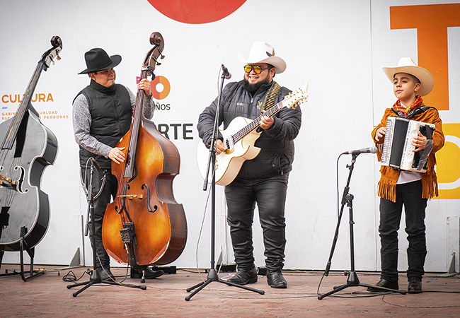 El escenario recibió a talentos de diversas generaciones, desde la frescura del Ballet infantil Hugo Corpus hasta la maestría de agrupaciones como Los Hermanos Soria y el Grupo Manhattan de Rodolfo Padilla Tanguma, quienes mantienen viva la esencia del “fara fara”, conjunto musical tradicional del norte de México.