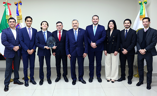 Acompañados de sus asesores, Rodrigo Medrano y Genaro Bermejo, los universitarios mostraron la presea de primer lugar al Rector de la UANL Santos Guzmán López; el Secretario General de la UANL, Mario Alberto Garza Castillo, y el coordinador de la Facultad de Derecho y Criminología, David Emmanuel Castillo Martínez.